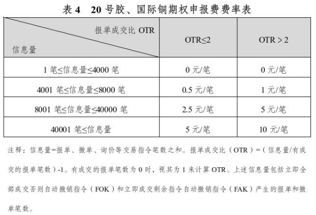 20号胶、国际铜期权对客户信息量收取申报费,具体如下表所示。
