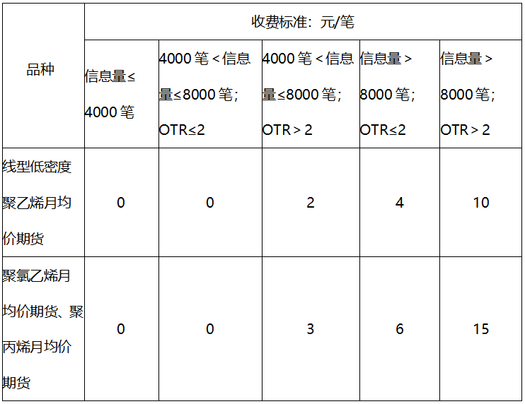 线型低密度聚乙烯月均价期货的交易手续费收取标准为3元/手,套期保值交易手续费收取标准为1.5元/手。